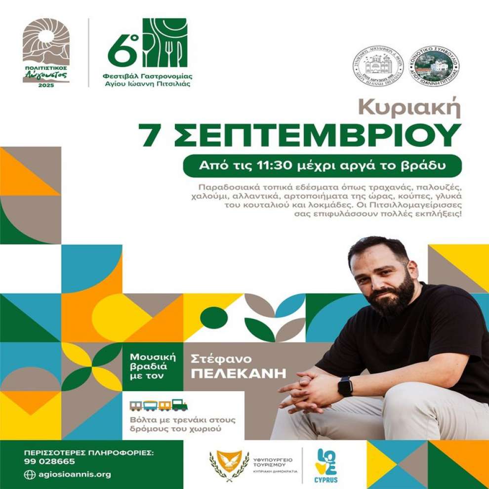 Την Κυριακή, 7 Σεπτεμβρίου 2025, η καρδιά της Πιτσιλιάς θα χτυπά στην κεντρική πλατεία του Αγίου Ιωάννη, όπου θα στηθεί μια γιορτή γεμάτη γεύσεις, αρώματα, μουσική και αυθεντική κυπριακή φιλοξενία.