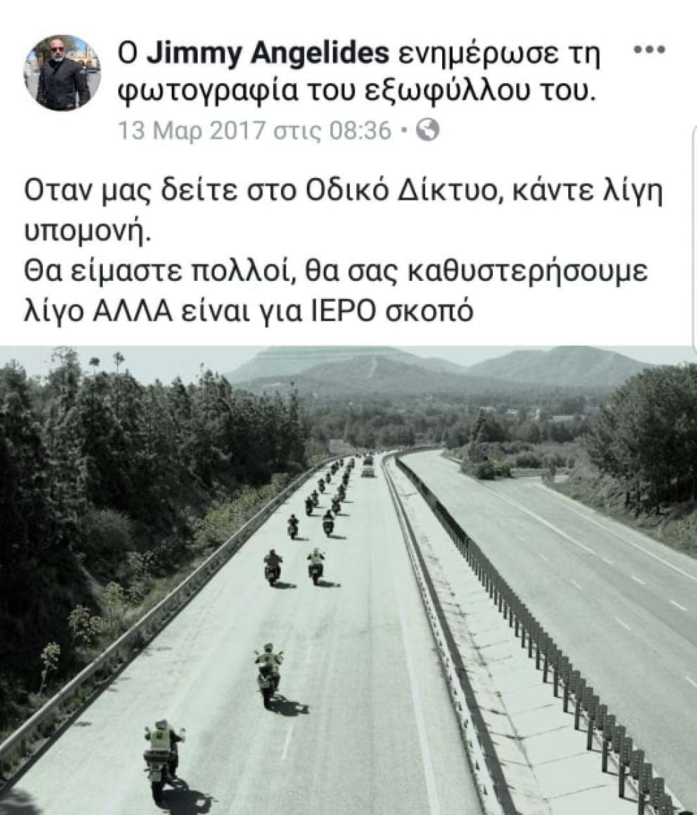 Παρακαλούμε το κοινό να δείξει κατανόηση και προσοχή στο οδικό δίκτυο, καθώς η ομάδα θα αποτελείται από πολλούς μοτοσικλετιστές οι οποίοι θα εμφανιστούν στον δρόμο μας, δημιουργώντας ίσως μικρές καθυστερήσεις πάντα προς κατεύθυνση αυτόν τον ιερό σκοπό.