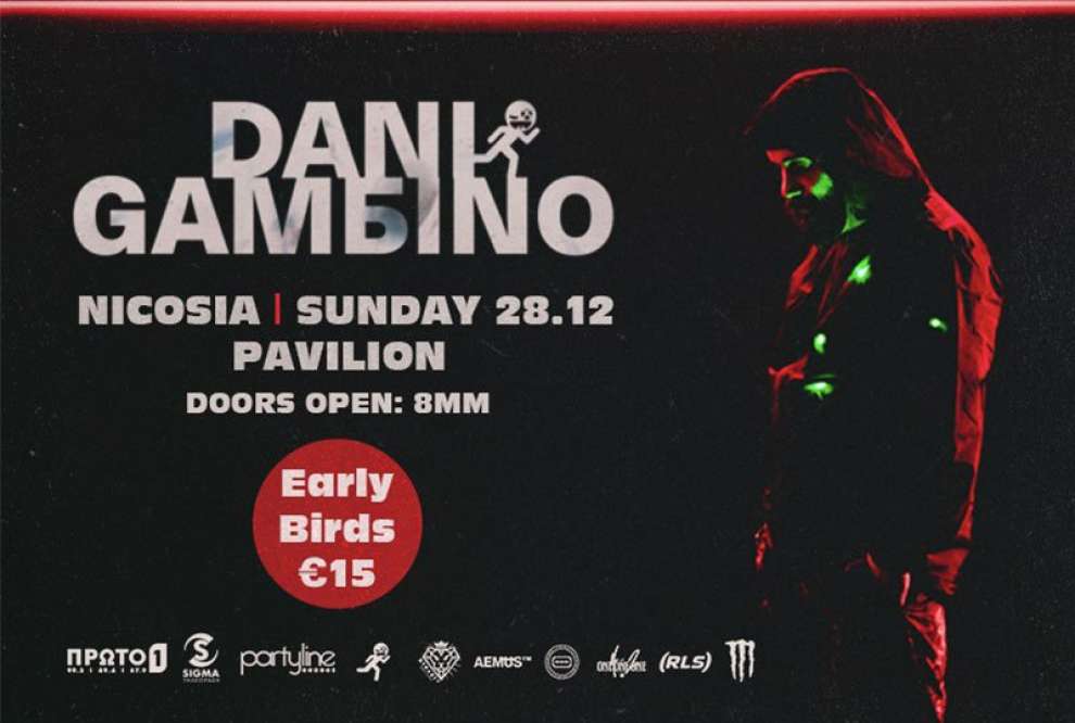 Η πιο εκρηκτική συναυλία των γιορτών έρχεται στη Λευκωσία! Ο κορυφαίος Έλληνας ράπερ Dani Gambino επιστρέφει δυναμικά στην Κύπρο για ένα live που υπόσχεται raw ενέργεια, αυθεντικό street ήχο και ρυθμούς που θα ανεβάσουν το vibe στο μέγιστο.