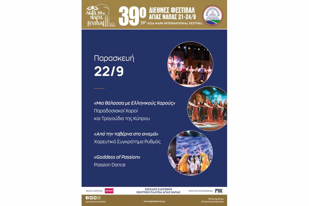 Το 39ο του έτος διανύει φέτος το Διεθνές Φεστιβάλ Αγίας Νάπας και υπόσχεται μέσα από το αξιόλογο καλλιτεχνικό πρόγραμμα που έχει καταρτίσει πολύ προσεγμένα ο Δήμος Αγίας Νάπας και την πλούσια γκάμα εκθέσεων και δραστηριοτήτων που προβάλλουν τα ήθη τα έθιμα και τις παραδόσεις του τόπου μας, να χαρίσει στους επισκέπτες όμορφες και αξέχαστες στιγμές αλλά και να τιμήσει την Παγκόσμια Ημέρα Τουρισμού η οποία εορτάζεται κάθε χρόνο στις 27 Σεπτεμβρίου.