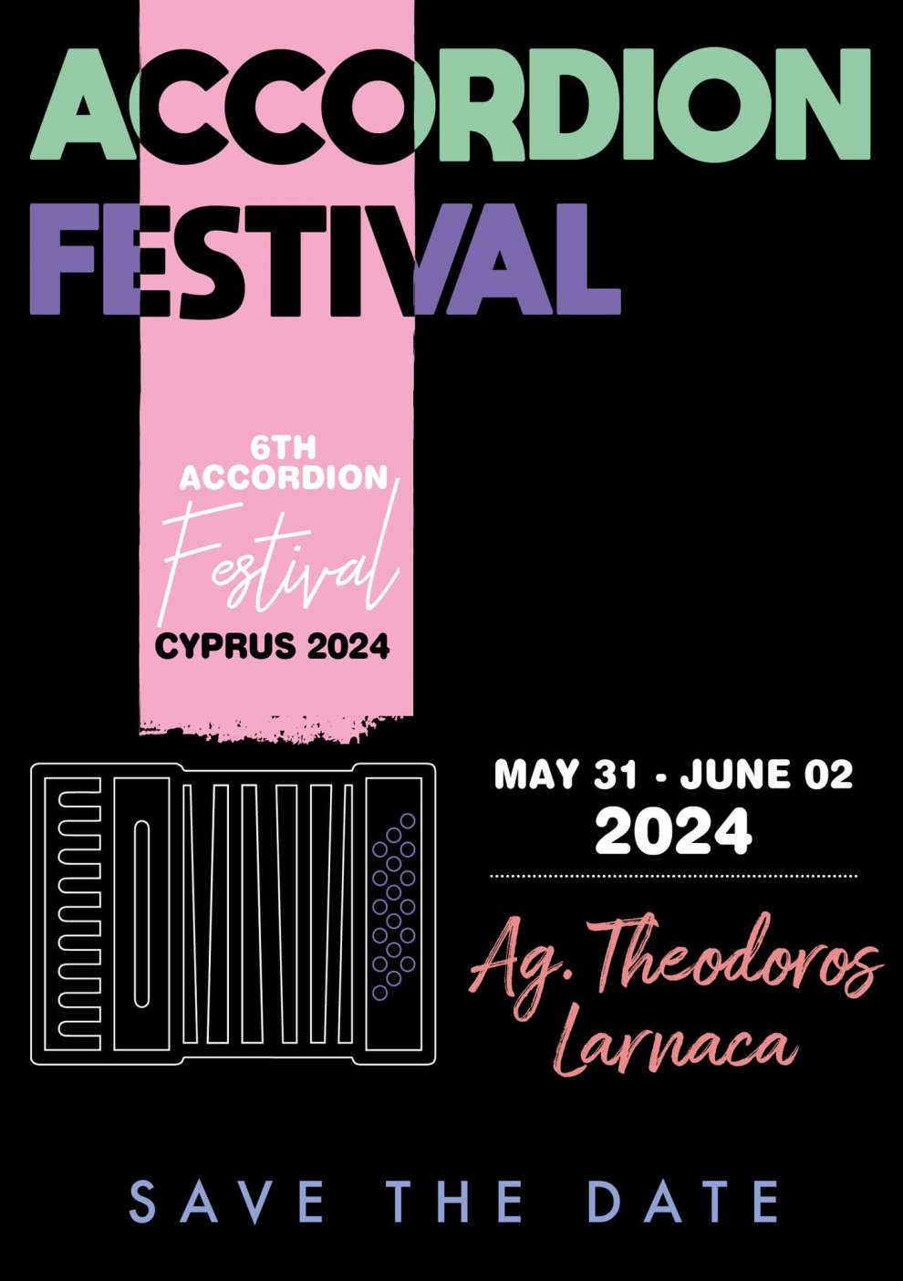 Μετά την επιτυχία που σημείωσαν οι προηγούμενες διοργανώσεις, το Φεστιβάλ Ακορντεόν Κύπρου, επιστρέφει και φέτος στην έκτη του έκδοση, στις 31 Μαΐου 2024 στον Άγιο Θεόδωρο Λάρνακας.