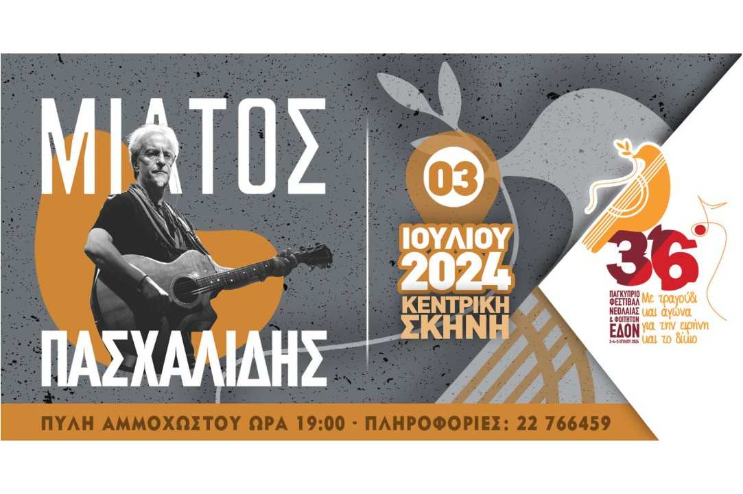 O κορυφαίος τραγουδοποιός και μοναδικός ερμηνευτής Μίλτος Πασχαλίδης, ανοίγει την αυλαία του φεστιβάλ σε μια συναυλία γεμάτη με τα κορυφαία τραγούδια του και όχι μόνο.