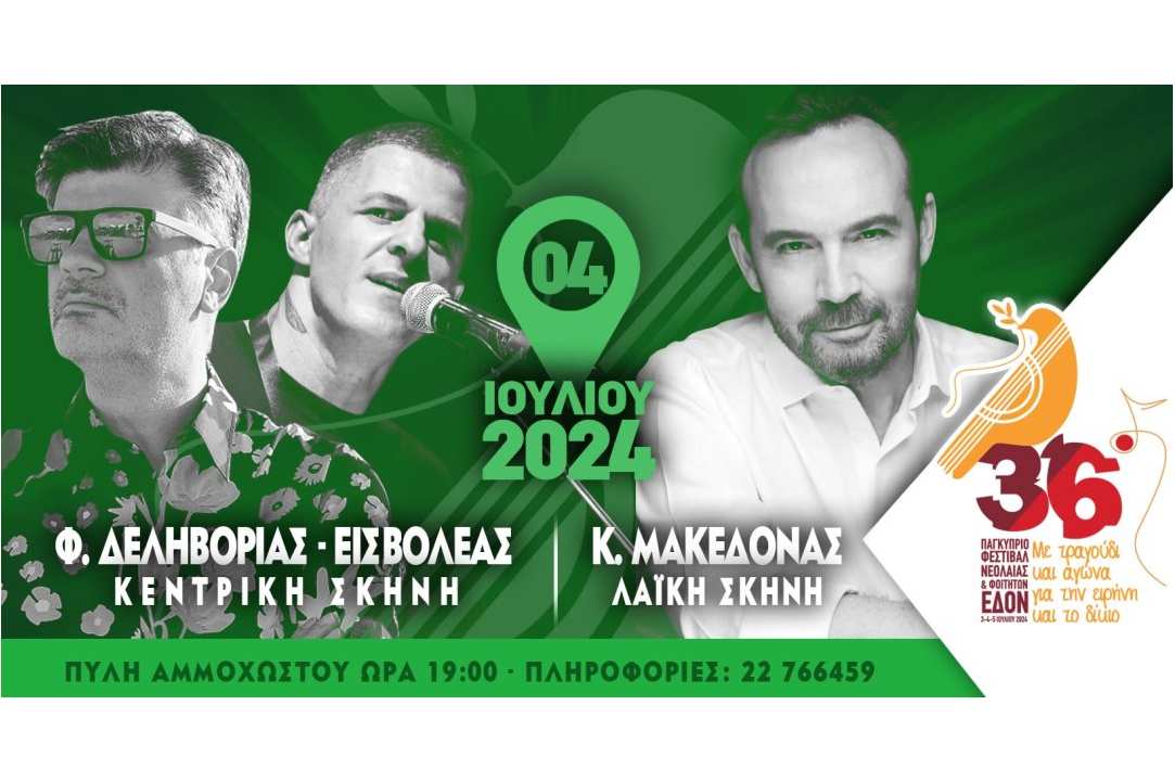 Το 36ο Φεστιβάλ Νεολαίας της ΕΔΟΝ, επιστρέφει με τρεις μεγάλες συναυλίες στον αναβαθμισμένο χώρο της Πύλης Αμμοχώστου, στις 3, 4 και 5 Ιουλίου.