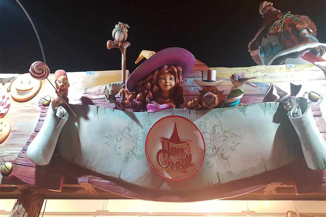 Το προσωπικό είναι ντυμένο με παραμυθένια κοστούμια, ενώ στο βάθος του μαγαζιού υπάρχει και το σπίτι της μάγισσας του παραμυθιού.