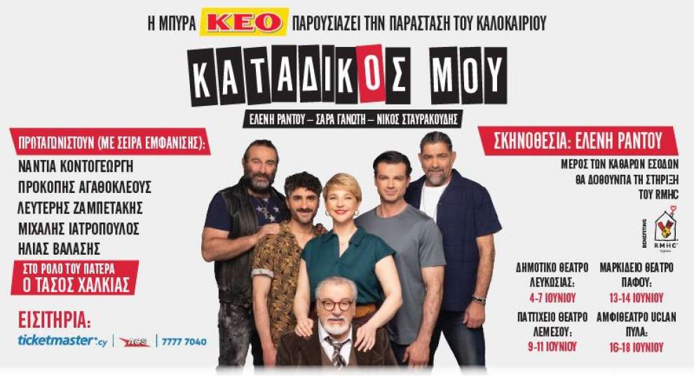 Με καυστικό χιούμορ και έντονους ρυθμούς, η νέα θεατρική παράσταση «Κατάδικός μου» της Ελένη Ράντου ετοιμάζεται να ανέβει στην Κύπρο, φέρνοντας στη σκηνή μια σύγχρονη ιστορία γεμάτη ανατροπές και συναισθηματικές εντάσεις.