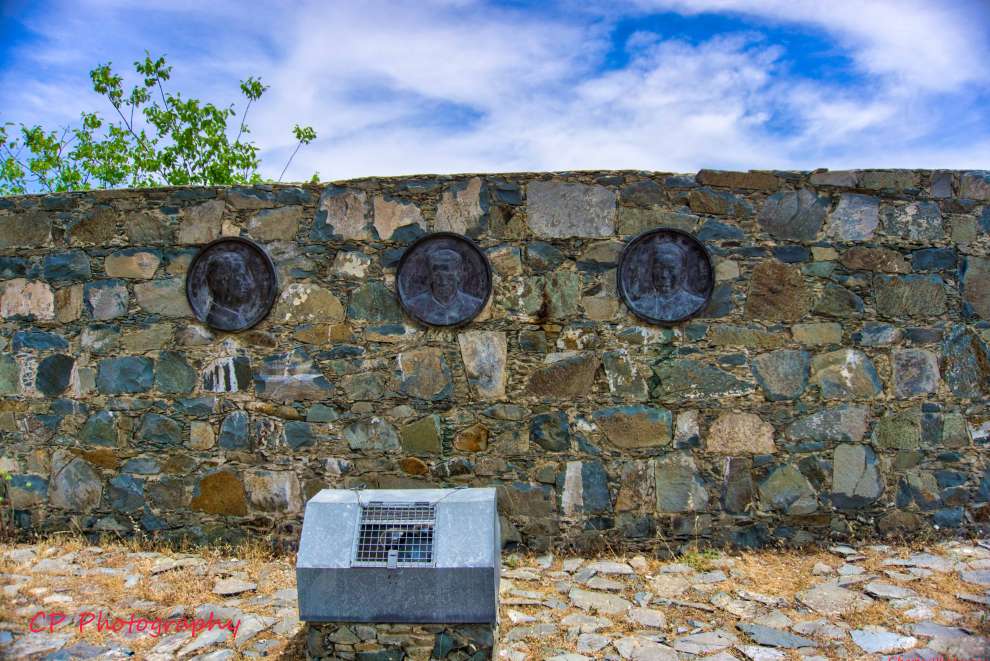 Δίπλα από το άγαλμα υπάρχουν και οι μορφές των Κυριακού Μάτση, Νίκο Γεωργίου και Μιχάλη Καραολή.