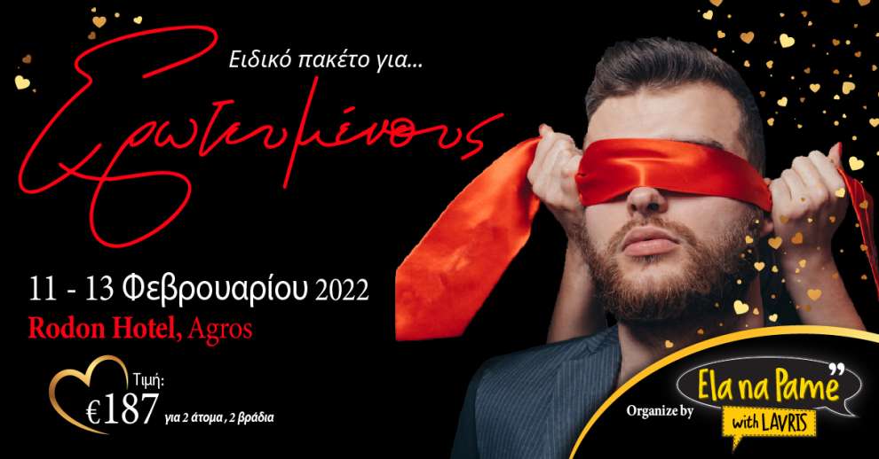 Το Elanapame έχει ετοιμάσει ένα ξεχωριστό"πικάντικο" πακέτο μόνο για ενήλικες...μόνο για ερωτευμένους 11 - 13 Φεβρουαριου 2022 στο Rodon Hotel!
