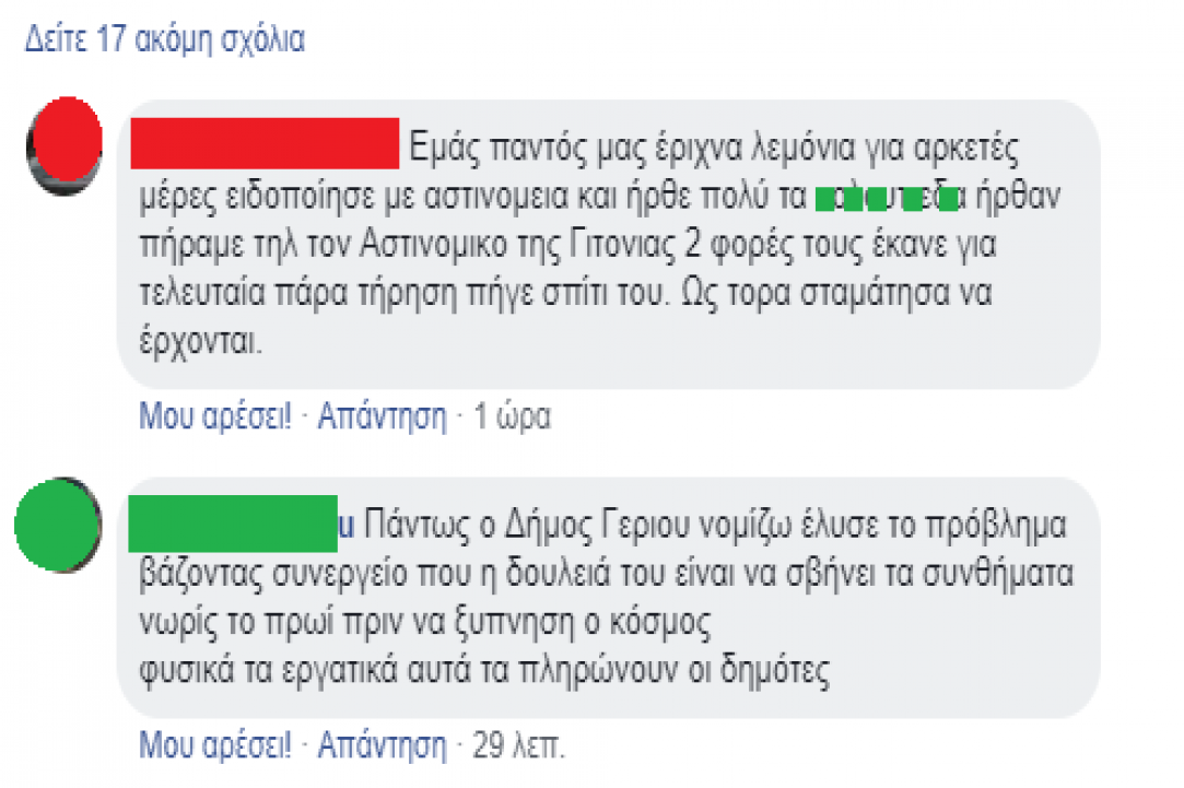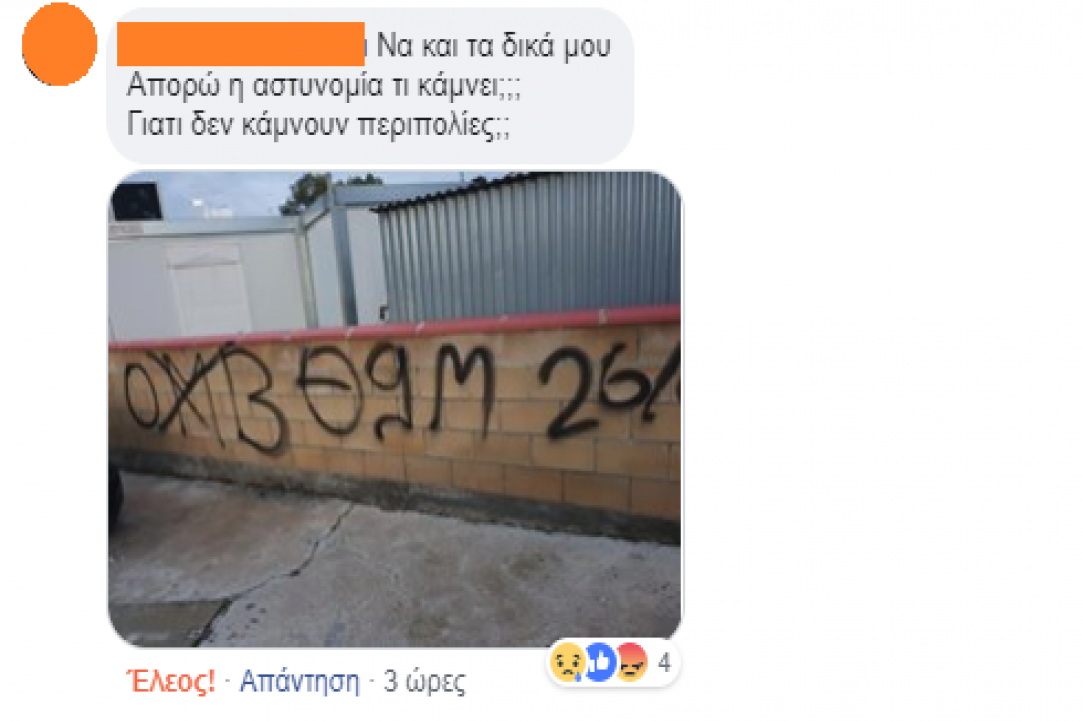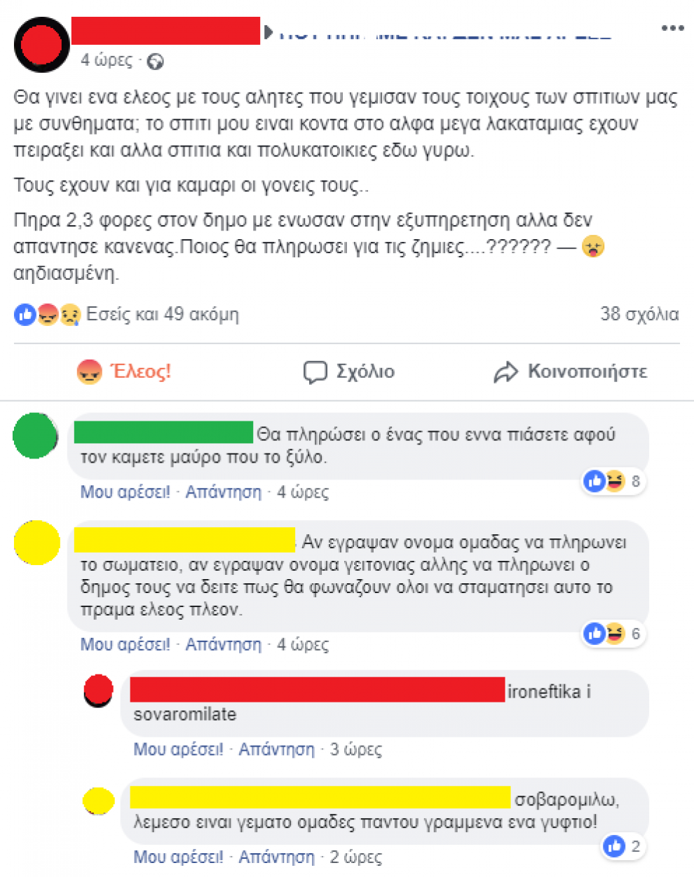 Οι κάτοικοι εξέφρασαν τα παράπονα τους σε γνωστή ομάδα στο Facebook για ζημιές σε τοίχους σπιτιών από ανεγκέφαλους γράφοντας συνθήματα ποδοσφαιρικού περιεχομένου και προβάλλοντας την ομάδα τους.
