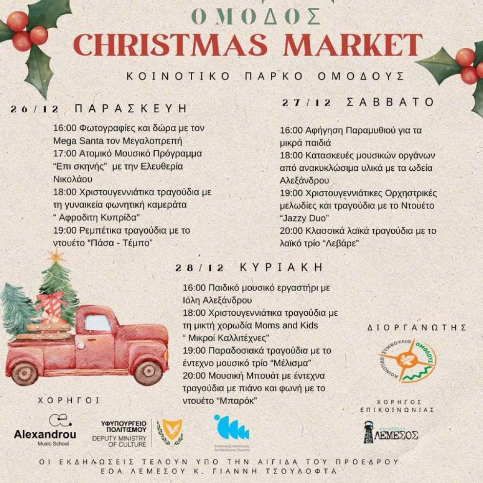 Στις 26, 27 και 28 Δεκεμβρίου 2025, το Κοινοτικό Πάρκο Ομόδους μετατρέπεται σε παραμυθένιο χριστουγεννιάτικο προορισμό, γεμάτο μουσική, δημιουργικά εργαστήρια, γιορτινές λιχουδιές και πολλές εκπλήξεις.