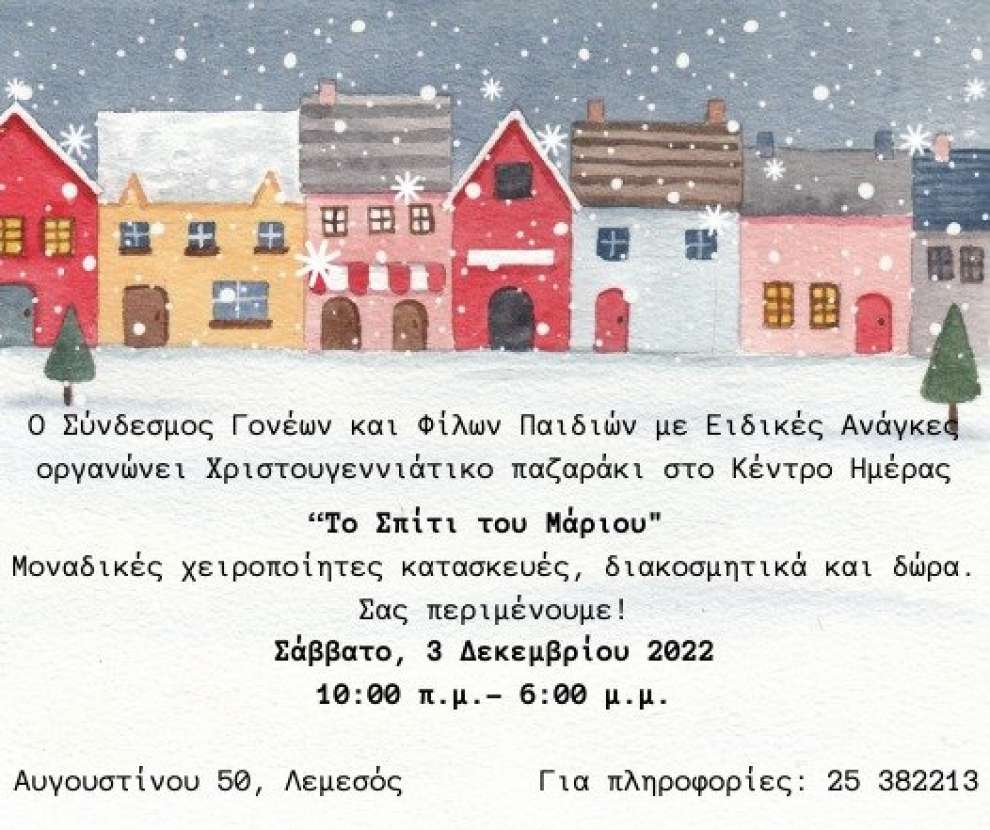 Ο Σύνδεσμος Γονέων και Φίλων Παιδιών με Ειδικές Ανάγκες οργανώνει Χριστουγεννιάτικο παζαράκι στο Κέντρο Ημέρας “Το Σπίτι του Μάριου".