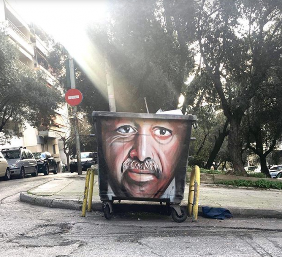 Έλληνας καλλιτέχνης ζωγράφισε τον Ερτογάν σε κάδο απορριμμάτων