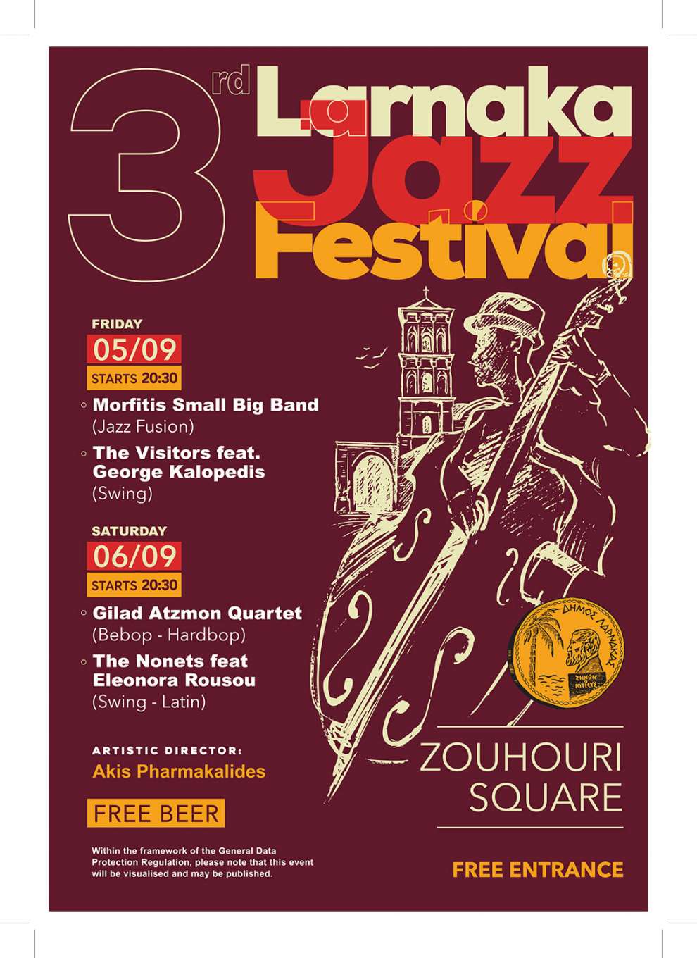 Friday and Saturday, September 5 and 6, the Municipality of Larnaca under the artistic direction of Akis Farmakalides promises rhythm, melodic and musical experiences for jazz music fans. With renowned artists of the genre, both Cypriot and foreign, the festival will move on diverse and free paths.