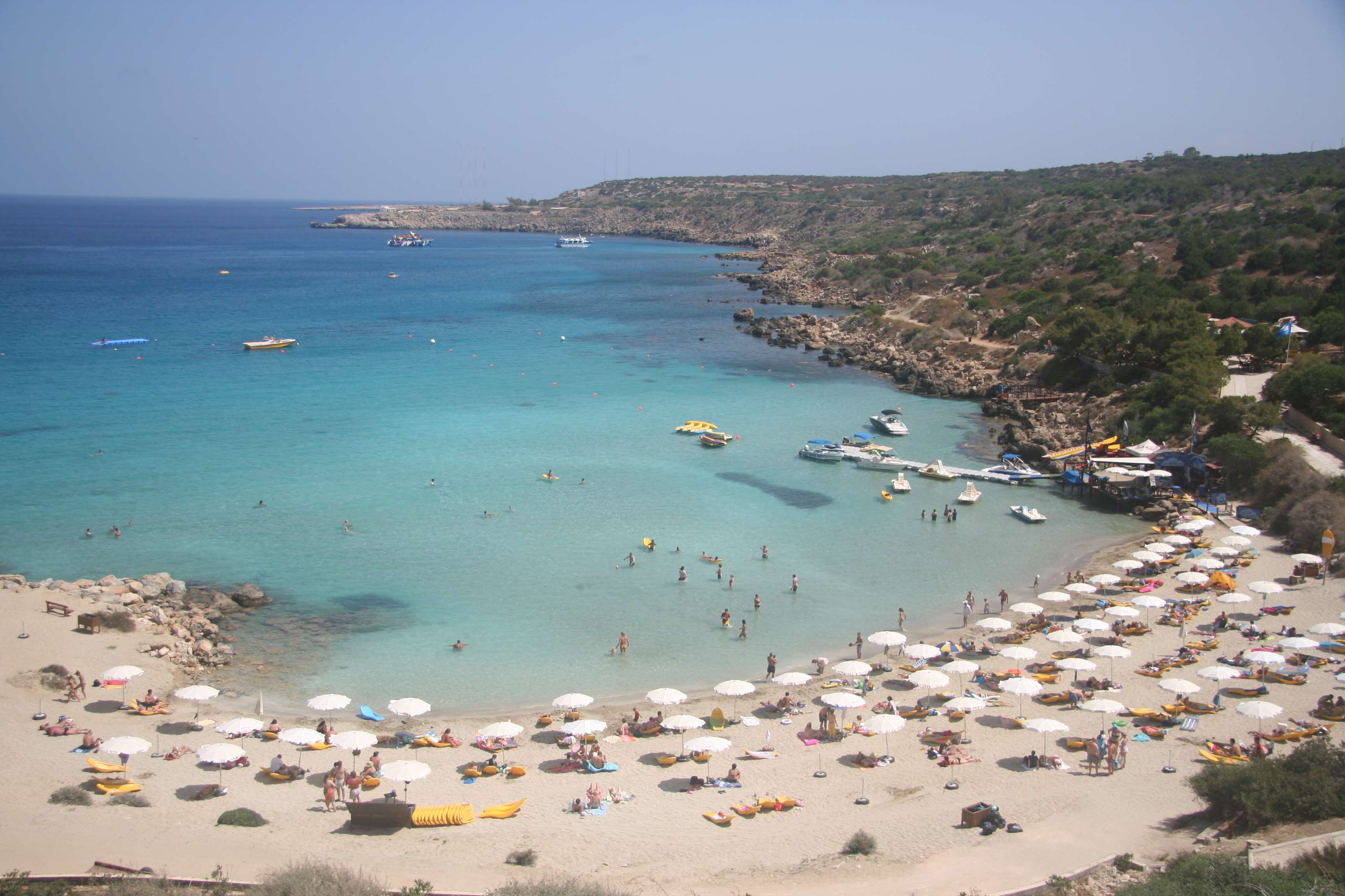 Konnos Beach is a scenic bay with golden beaches and crystal clear blue waters, which defines the border between Ayia Napa and Protaras. The 200-meter-long Konnos beach is one of the most picturesque beaches on the island.
