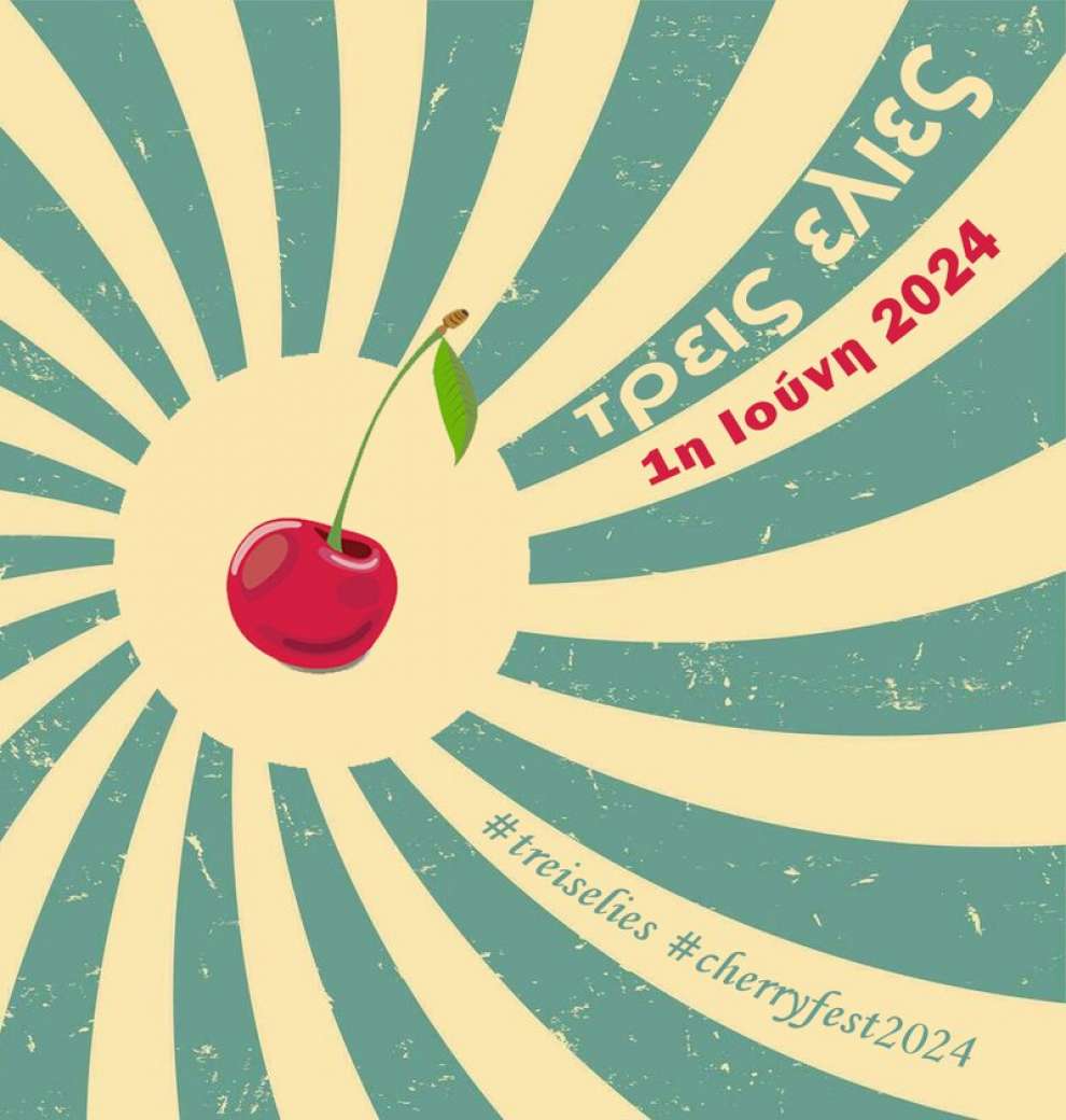 Το Σάββατο 1 Ιουνίου 2024, το χωριό Τρεις Ελιές μας προσκαλεί στην κοινότητα για να χαρούμε μαζί τους τη Γιορτή του Κερασιού που διοργανώνει το Κοινοτικό Συμβούλιο Τριών Ελιών.