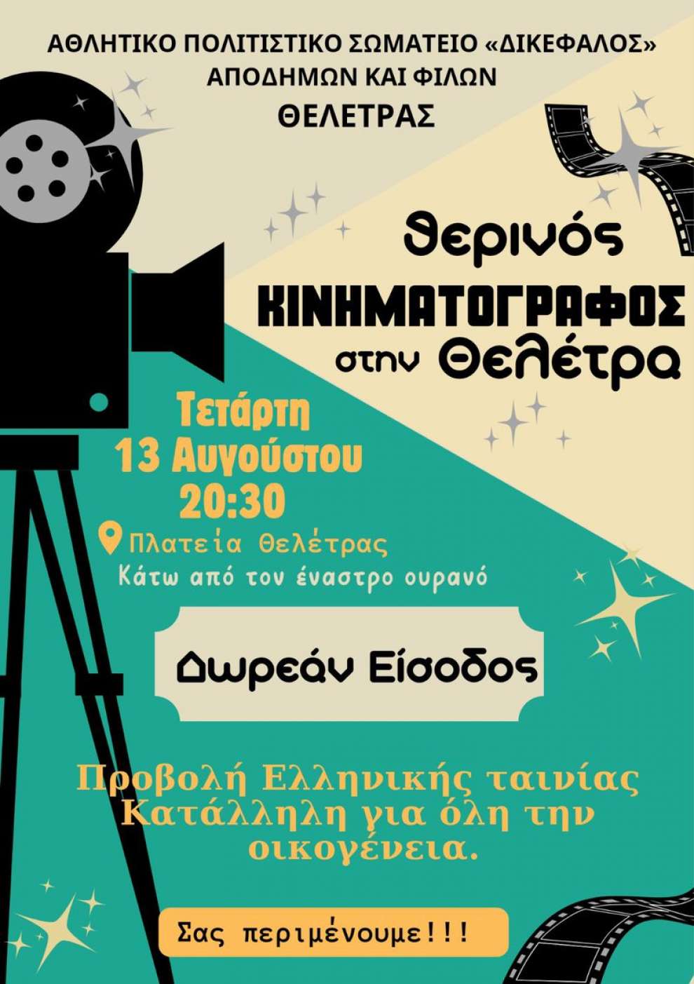 Το Σωματείο Αποδήμων Θελέτρας με ιδιαίτερη χαρά σας προσκαλεί σε μια ξεχωριστή βραδιά, αφιερωμένη στον μεγάλο Κύπριο κωμικό ηθοποιό, τον δικό μας Σωτήρη Μουστάκα. Στο πλαίσιο των καλοκαιρινών πολιτιστικών μας εκδηλώσεων, διοργανώνουμε ένα αφιέρωμα στη ζωή και το έργο του, στον άνθρωπο που μας χάρισε άφθονο γέλιο και έγραψε τη δική του χρυσή σελίδα στον ελληνικό κινηματογράφο και το θέατρο.