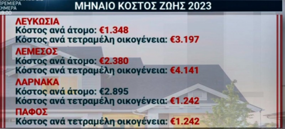 *Στη τη Λάρνακα το κόστος ανά άτομο είναι 1.242 ευρώ, ενώ το κόστος ανά τετραμελή οικογένεια είναι 2.895 ευρώ. Εκ παραδρομής τα ποσά στον πίνακα γράφτηκαν αντίθετα.