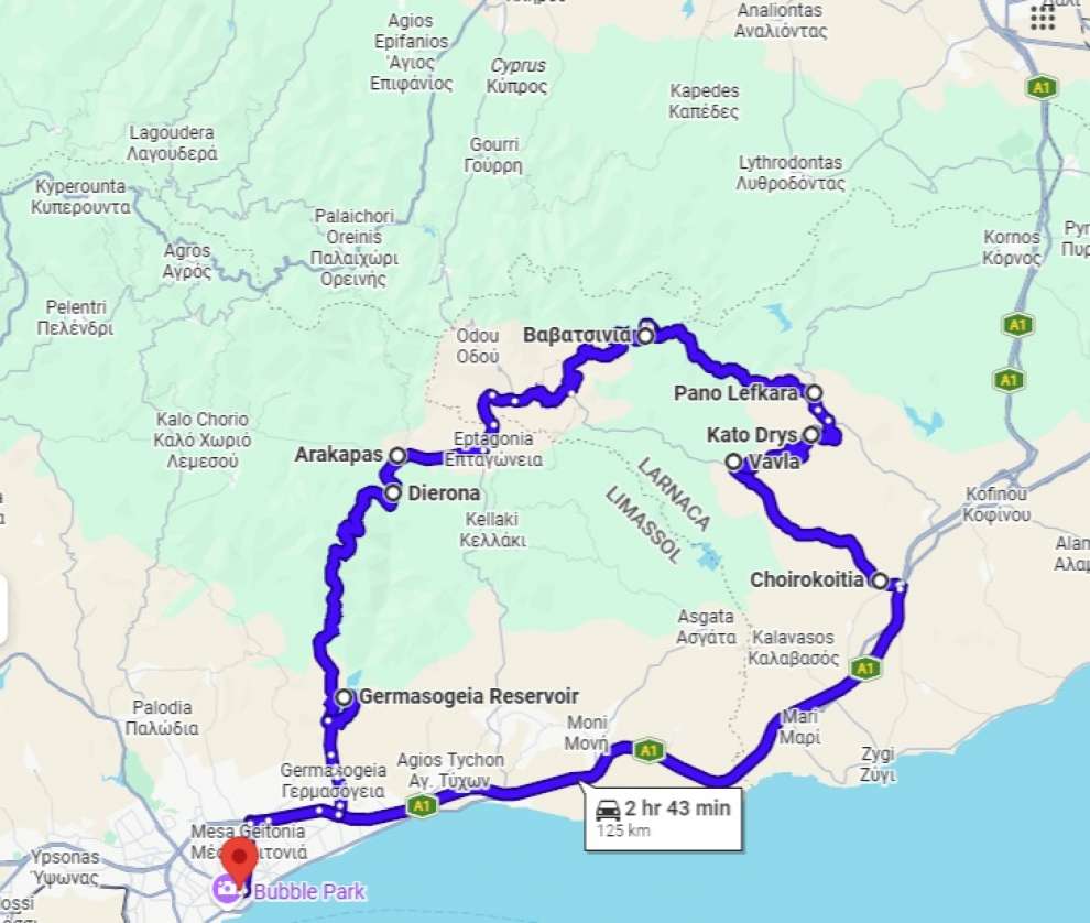 The route is circular, starting and ending in Limassol, allowing you to experience different landscapes throughout the journey.
