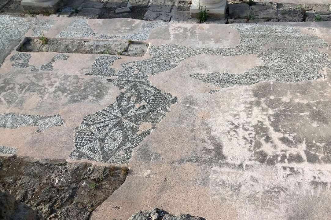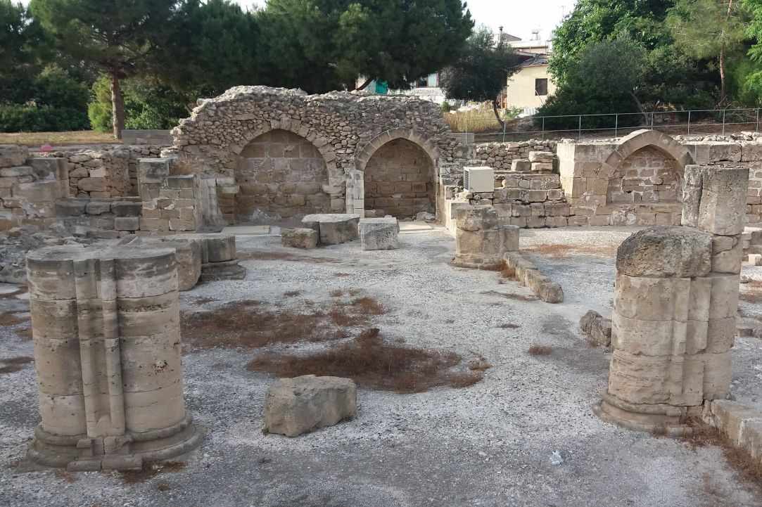 Церковь Айа Кирьяки построена на руинах раннехристианской базилики 5-го века. Она была построена во время христианизации острова и в конечном итоге стала первым собором в Пафосе. Это одна из самых больших ранних христианских базилик на Кипре. Почти вся территория покрыта мозаичным полом и украшена геометрическими мотивами.