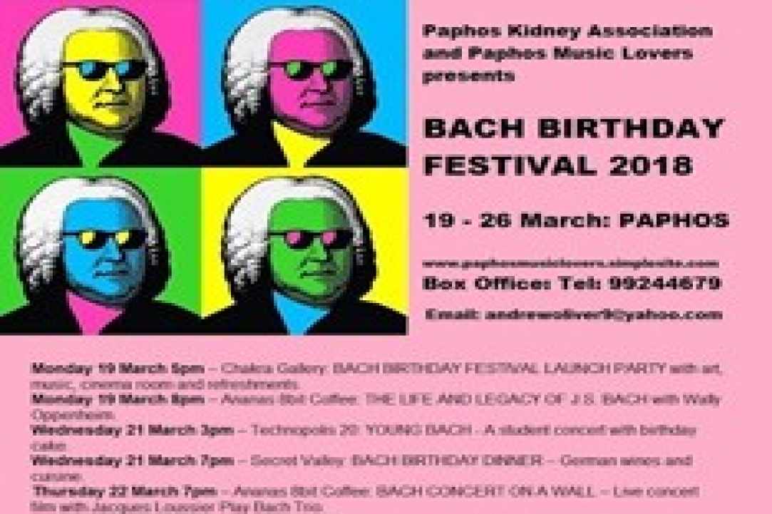 Ο Σύνδεσμος Νεφροπαθών Πάφου, το Paphos Music Lovers και το Children's Philharmonic Society of Paphos παρουσιάζουν το κονσέρτο μαθητών με τίτλο “Young Bach”, στα πλαίσια του "Bach Birthday Festival", στο Τεχνόπολις 20, την Τετάρτη, 21 Μαρτίου 2018, στις 3μμ, όπου όλα τα καθαρά έσοδα θα δοθούν στο ταμείο του συνδέσμου νεφροπαθών Πάφου για τη δημιουργία νέου νεφρολογικού θαλάμου.